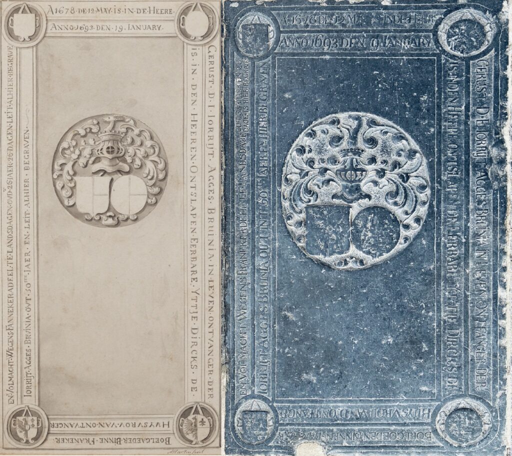 Zerk 100 Op de zerk bestaat het laatste deel van het randschrift uit twee regeltjes in kleine letters. De steenhouwer zal hiertoe zijn overgegaan, toen hij bemerkte, dat hij niet de gehele tekst een plaats kon geven, als hij voortging met deze uit te voeren in de gewone letter. Op de hoeken in cirkels zijn … Zerk 100