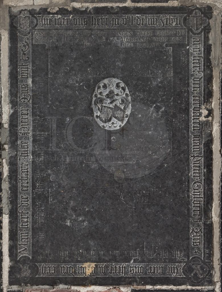 Zerk 135 De grote zerk betreft o.m. de familie Ens. De zerk heeft een dubbel gotisch randschrift waarvan de binnenste maar voor een deel leesbaar is. De tekst van het randschrift is: Int Iaer ons Here M D c L de’ IIII Februarij sterf de’ eersamen man Pieter Gysbert Ens Int Iaer ons Heere M … Zerk 135