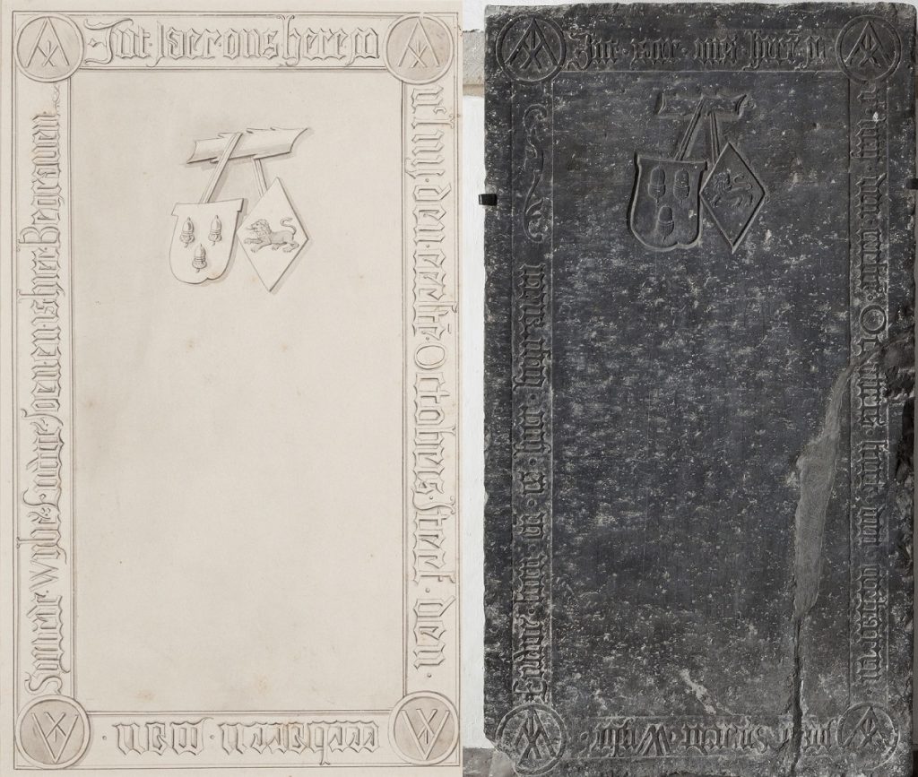 Zerk 138 Randschrift: Int jaer ons Heren MDc LVIII den eersten Octobris sterf den eerbaren man Syurdt Wybe Endvesoen en is hier begraven De zerk is een fraaie steen met twee familiewapens (alliantiewapens), hangende aan een tak. Het ene met drie eikels en het andere met een ruitvormig schild met leeuw. De hoekversiering bestaat uit … Zerk 138