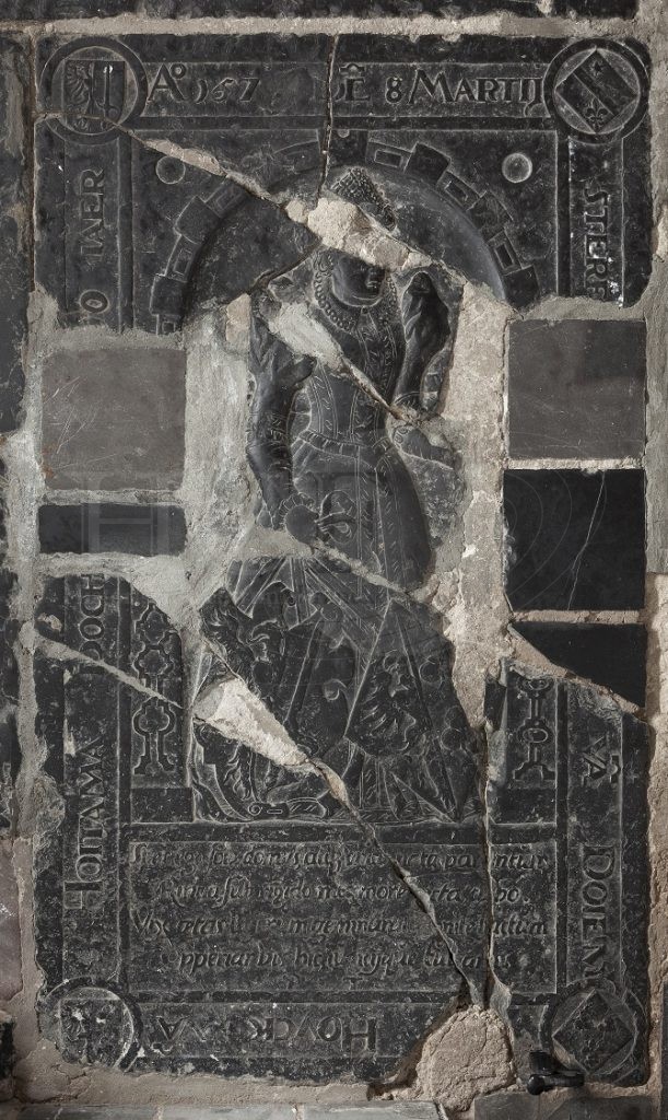 Zerk 139 Het zerkje is van zeer fraai beeldhouwwerk voorzien, maar door breuken erg beschadigd. Uit het werkjournaal van de laatste restauratie (1941 – 1943) blijkt dat de steen bij het verplaatsen in stukken is gevallen en dat sommige stukken niet meer gebruikt konden worden. Die delen zijn vervangen door tegels. Onder het beeldhouwwerk staat … Zerk 139