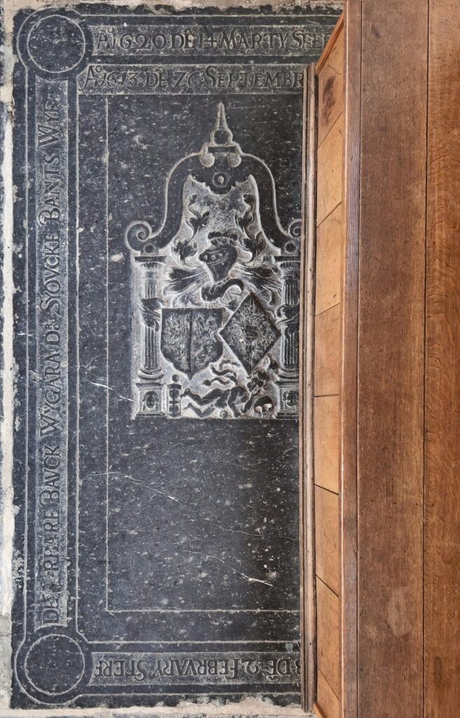 Zerk 187 Deze zerk is voorzien van twee randschriften. Een buitenste en een binnenste. Verder is de steen niet gebruikt. Ao 1620 den 14 Marty Sterf Den Eersamen Syovcke Bants ende alhier Begraven Ao 1618 den 2 February Sterf De Eerbare Bavck Wygara Dor. Syovcke Bants Wyf binnenste regel: Ao 1613 den 26 Septembris Sterf … Zerk 187