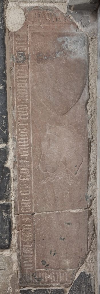Zerk 194 Deze rode Bremer zerk is één van de zeer oude zerken in de Martinikerk. Het rechterdeel van de zerk ontbreekt waardoor het randschrift niet meer compleet is. Deel tekst randschrift is: …int iaer ons Heren M CCCC ende IIIII op sinte januarius avond biddet voir die ziel …….. Op het middenvlak een verhoogt … Zerk 194