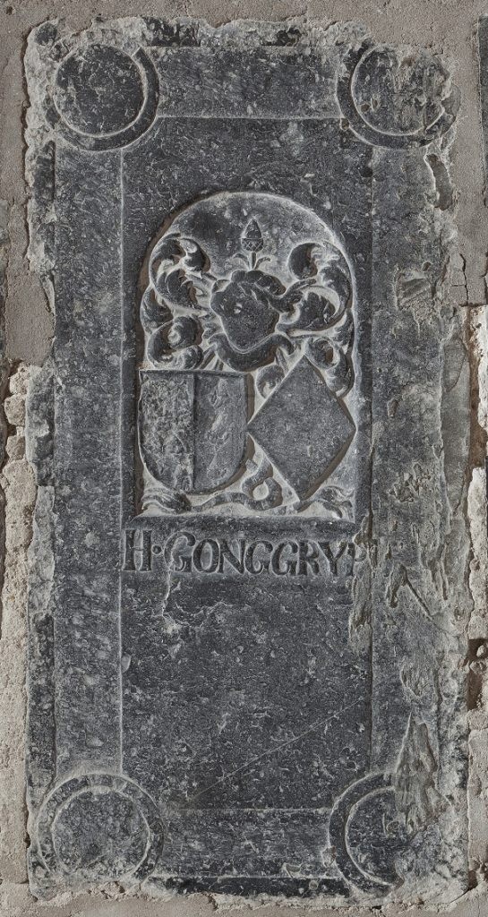 Zerk 300 Het zerkje dat tegen het doophek aan ligt blijkt min of meer een standaard zerkje te zijn. Waarschijnlijk voor jong overleden kinderen. Dit model zerk komt meerdere malen voor in de kerk, zoals bij de hoek van de koortrap. Het randschrift is afgesleten. Alleen onder het beeldhouwwerk staat de naam: H. Gongrijp. Het … Zerk 300