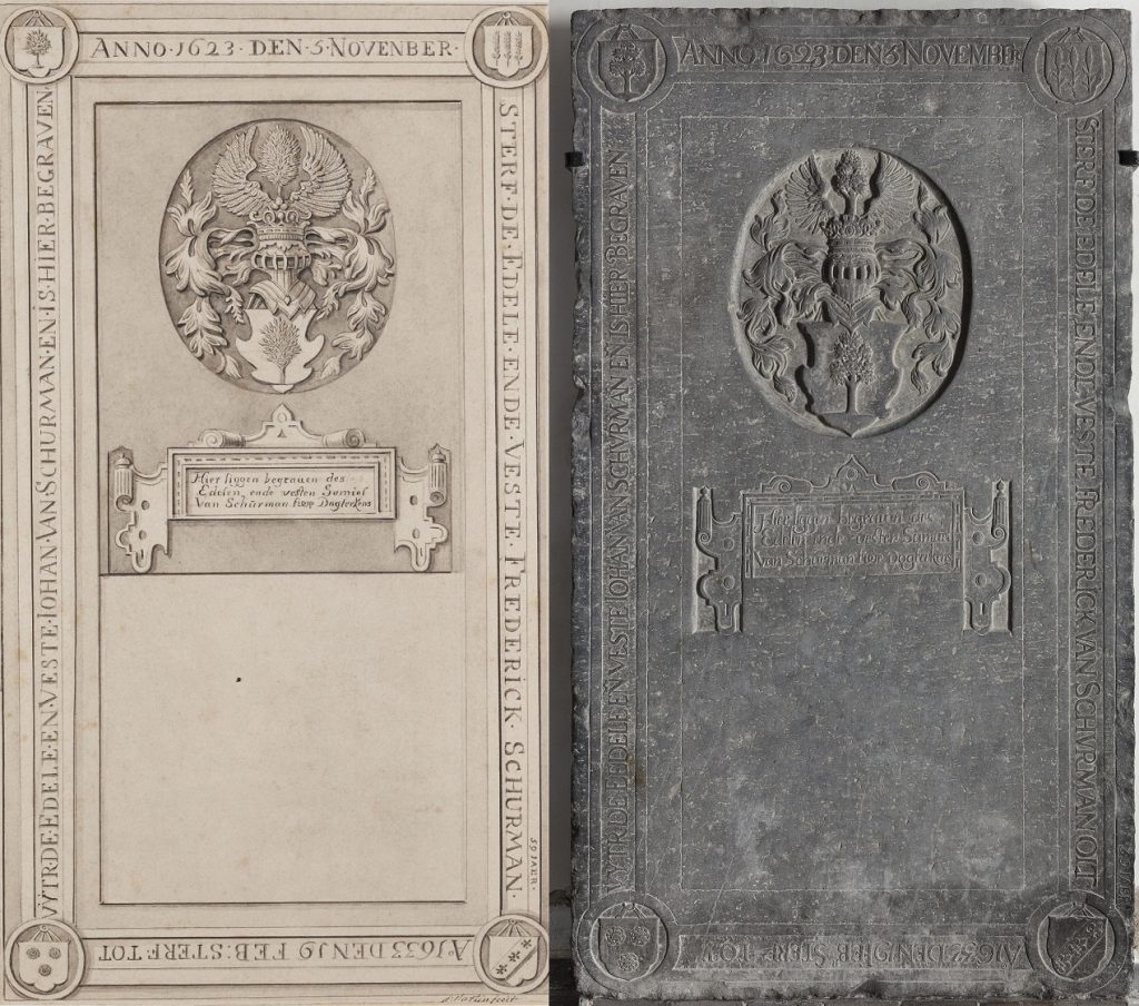 Zerk 40 Deze zeer grote en fraai bewerkte zerk is ongeschonden en heeft betrekking op de familie van Schurman. Het randschrift is: Anno 1623 den 5 November sterf de Edele ende Veste FREDERICK VAN SCHURMAN olt 59 jaer. A(nn)o 1633 den 19 Febr. sterf tot Uijtr(echt) De Edele en Veste JOHAN VAN SCHURMAN en is … Zerk 40