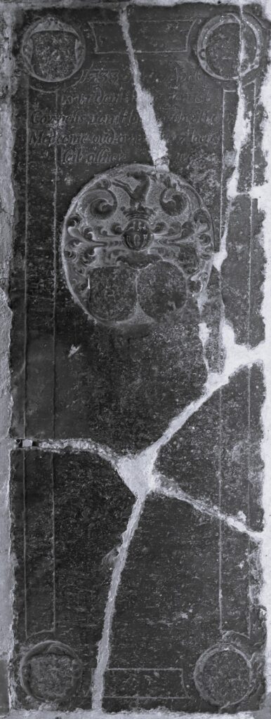 Zerk 86 De zerk is smal en lang en nogal beschadigd. Tekst middenvlak is: 1733 den 17 April is in den Heere gerust Cornelis van Houwerda Studio Medecine oud omtrent 27 Iaer leit alhier begraven In een cirkelvorm onder de tekst bestaat het beeldhouwwerk uit ornamenten en een aankijkende sierhelm met als helmteken een steigerend … Zerk 86
