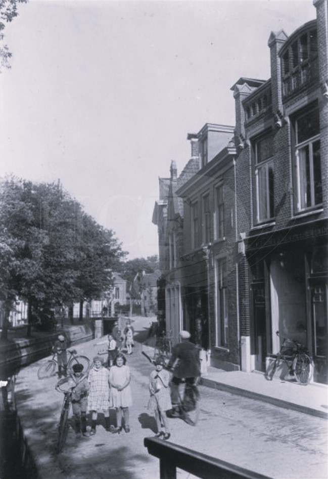 Schepen liggenin de stadsgracht aan de Zilverstraat