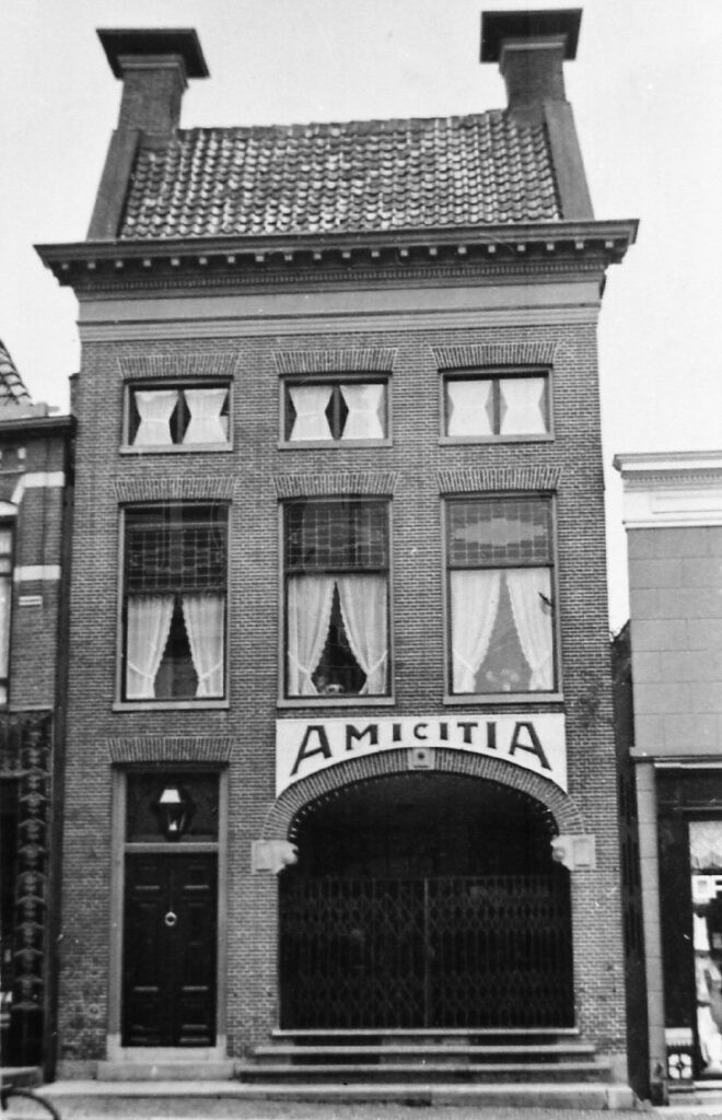 Naast de Amicitia is de hoge stoep net weggebroken. In dit pand was de kruidenier Zijlstra. Links het pand waarin Lodewijk op de voorstraat is begonnen.