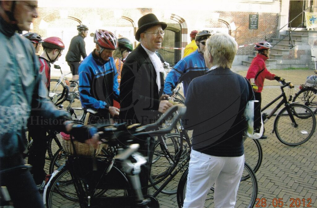Wiebe Tolsma tijdens de 11 stedentocht op de Fiets in zijn woonplaats Franeker bij de stempelpost