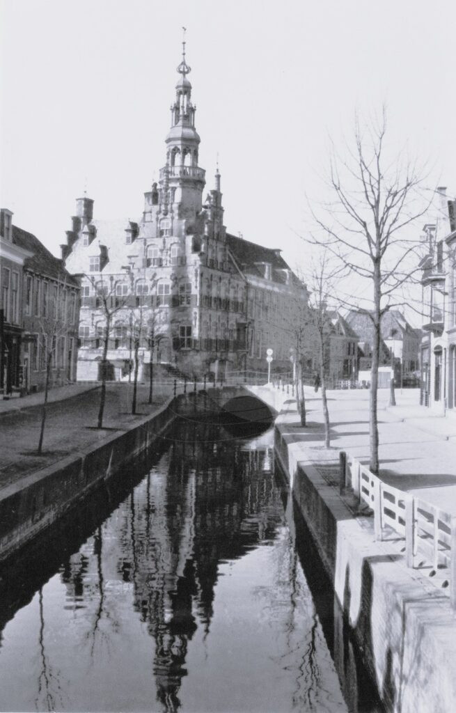 Foto van het Stadhuis genomen vanf de Martenastins aan de Voorstraat