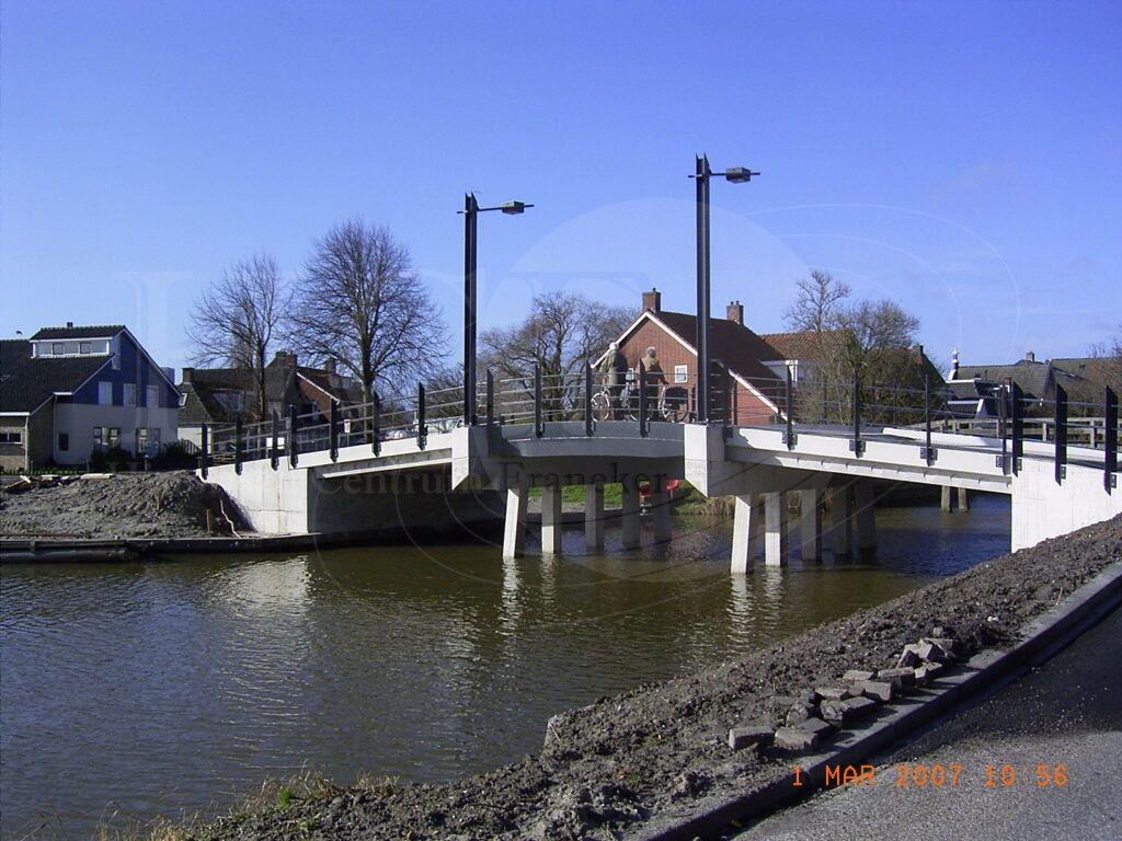 De Paardebrug aan de Salverderweg met op de achtergrond Molen de Haan op Vijfhuizen 28