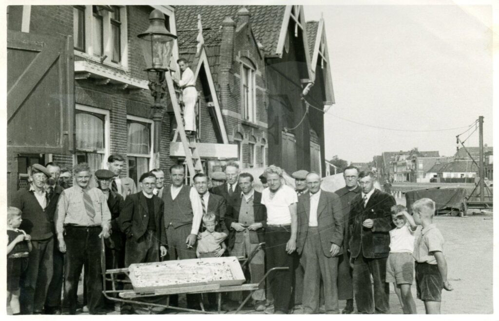 Personeel van de Groenteveilig bij het 25 jarig bestaan aan de Prins Hendrikkade. Met enkele bekende namen. Hedzer Pekel, Koningveld. (zie lees meer )