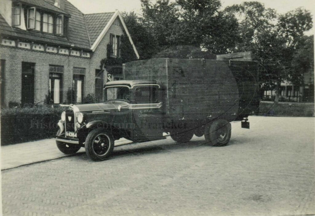 Voertuigen. Waarschijnlijk een vrachtauto van Jacob Jorritsma uit Franeker (staat ook op de auto ) . aardappelhandel. Lycklamastraat 10. tenaamstelling 30 September 1938 B - 24922. dezelfde naam Jacob Jorritsma vinden we ook in 1928 te Tzummarum met B - 14135 ( Hij kwam op 19-05-1932 van Tzummarum naar Franeker )