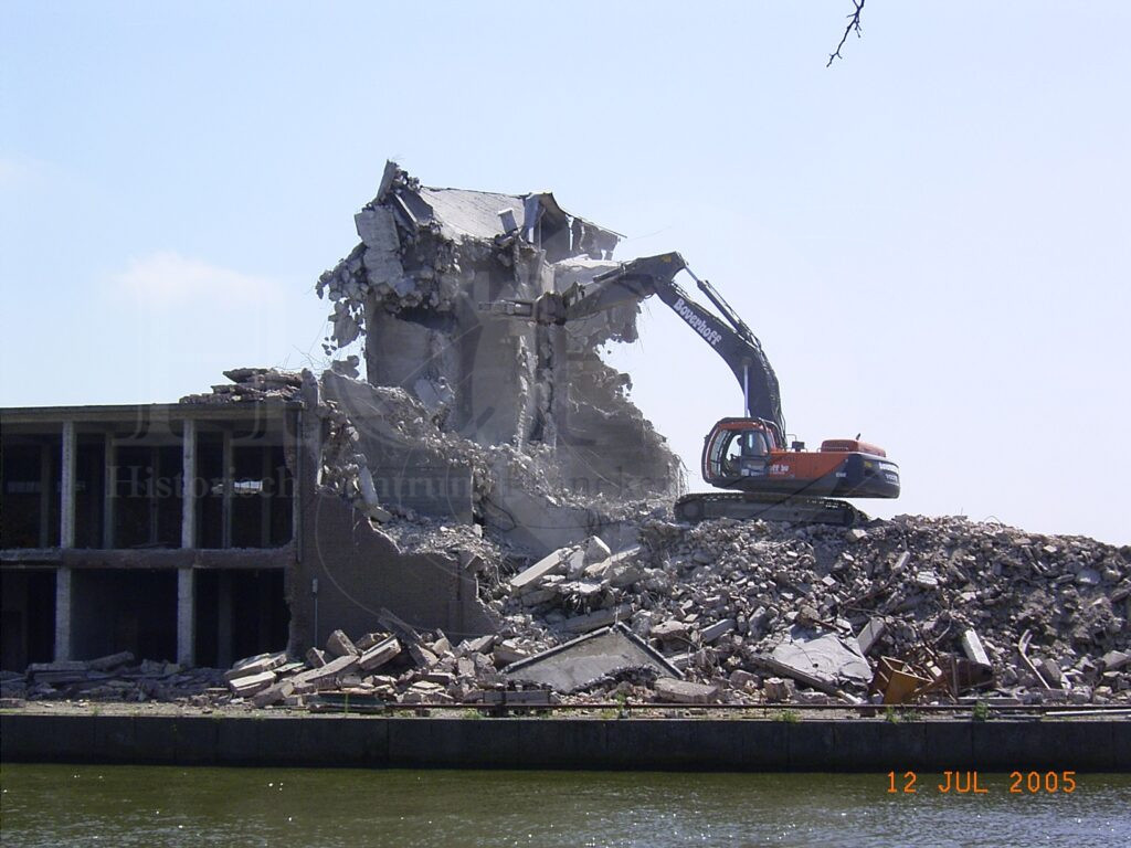 Afbraak van de gebouwen van de Z.P.C. Op de achtergrond de Zuiderkade