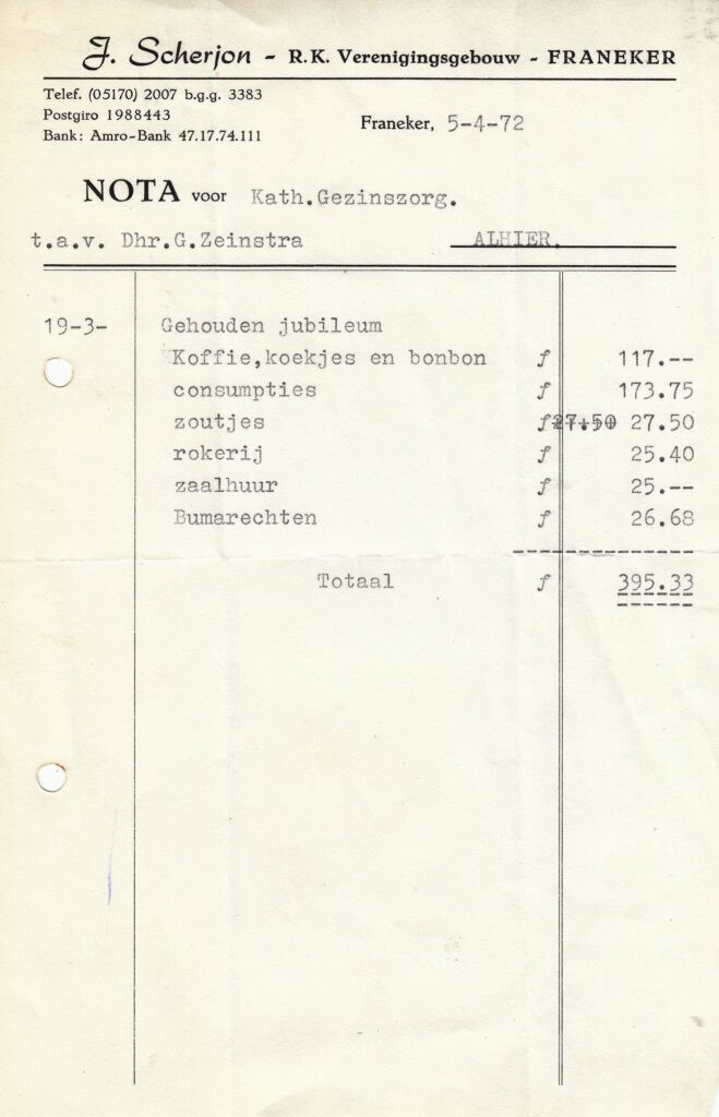 J. Scherjon, RK Verenigingsgebouw, Nota voor de Heer Zeinstra voor het houden van een jubileum van de Katholieke gezindszorg