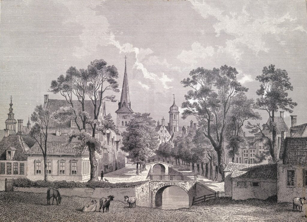 Fotolijstje met een afbeelding van de voorstraat toen daar nog een gracht aanwezig was